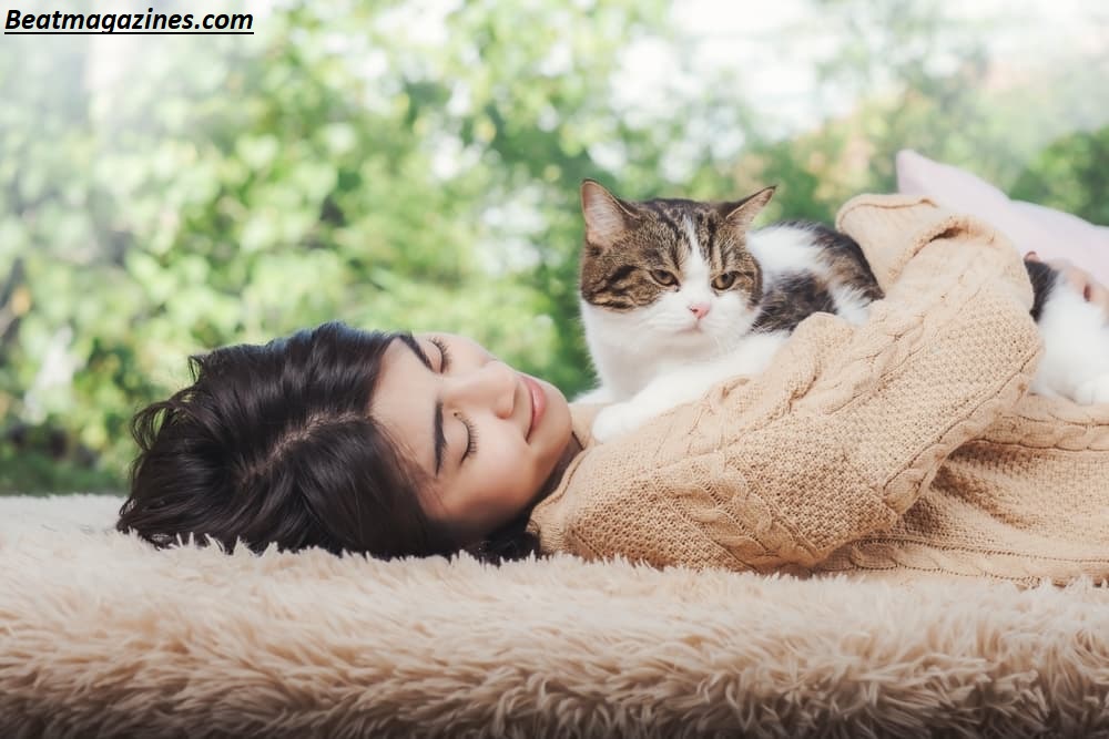 Another fascinating reason is your heartbeat. If you’re asking why does my cat sleep on my chest, your heartbeat plays a calming role.